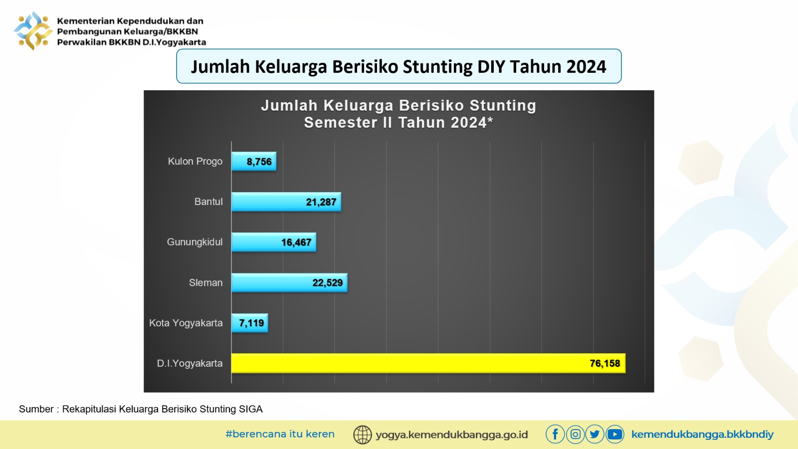 Masih ada puluhan ribu jumlah keluarga resiko stunting di wilayah Daerah Istimewa Yogyakarta yang membutuhkan penanganan dan pengawalan dari kita semuanya untuk terus sehat, tumbuh dan berkembang dengan baik.