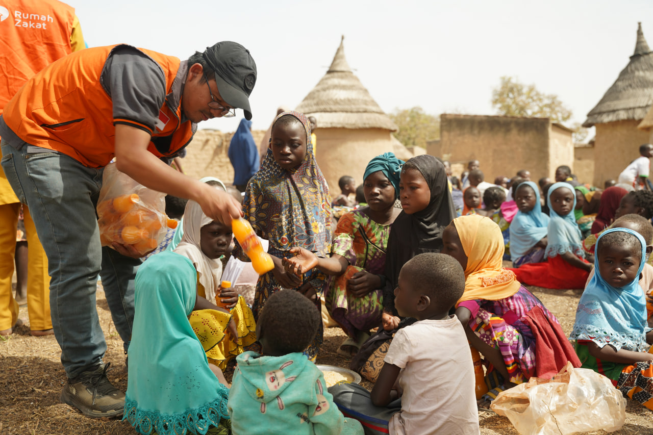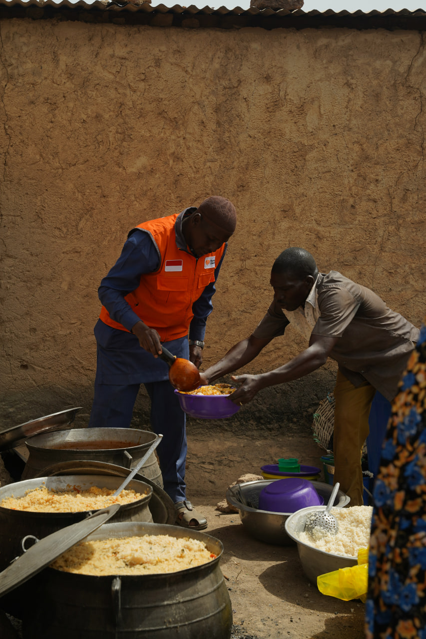 Dibantu oleh relawan lokal penyaluran berbagi makanan ini dilakukan di wilayah Saria Village Province Boulkiemde, berbekal amanah sahabat, senyum merekah terlihat di wajah kecil adik-adik disana, saat menerima makanan di tangan mereka