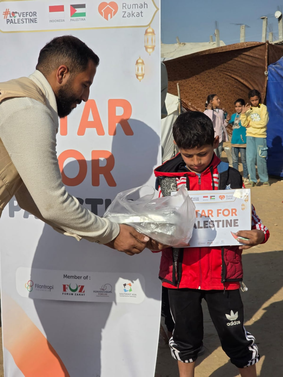Sebanyak 2.500 porsi ifthar disampaikan untuk warga di Hunian Komunal Terintegrasi Rumah Zakat dan di wilayah Tel Al Hawa, Gaza Utara.