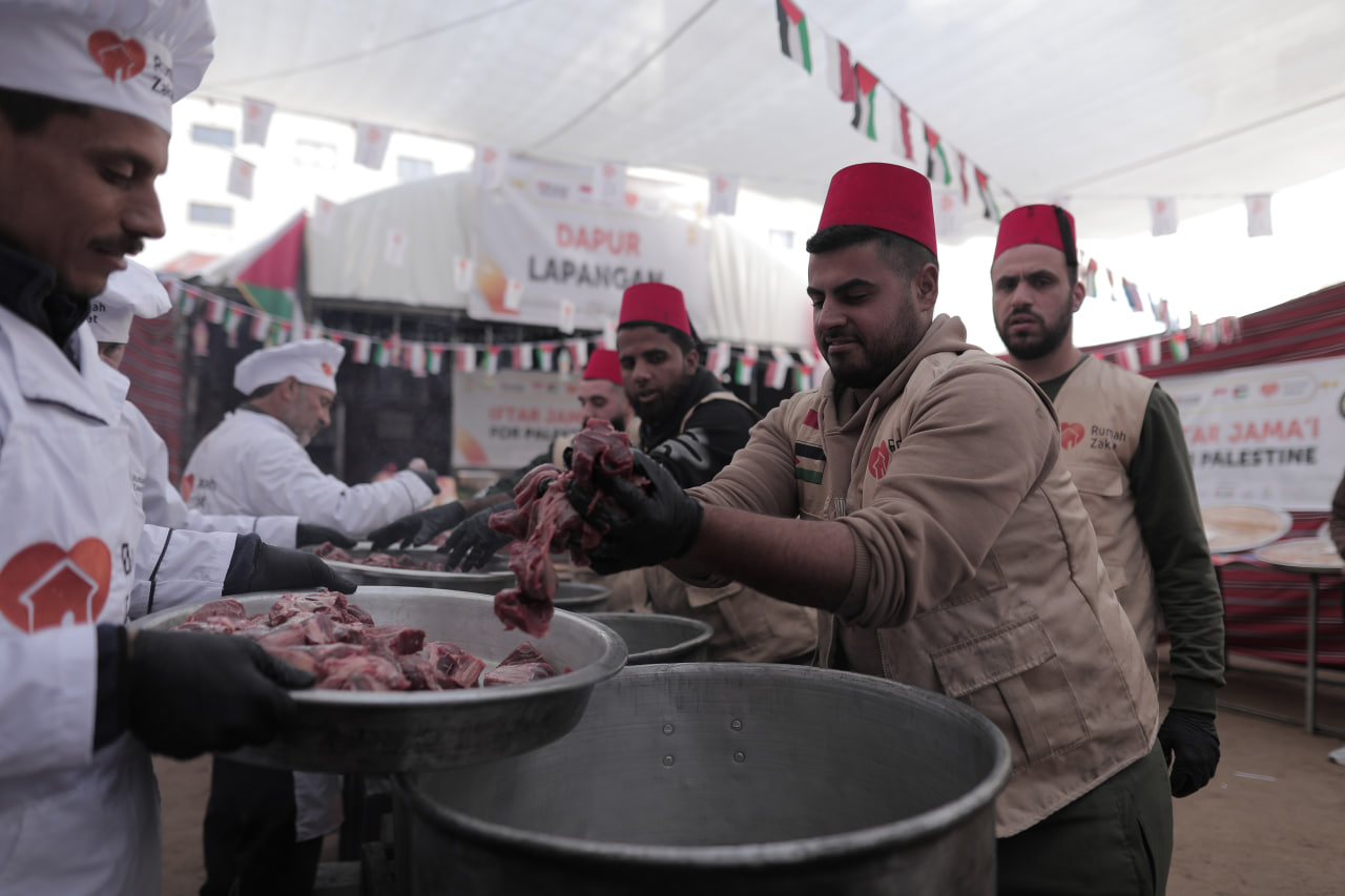 Tepatnya di Tel al Hawa School, Gaza Utara, sajian istimewa kembali hadir untuk waktu berbuka 600 pengungsi, walau di tengah gempuran trauma yang masih belum usai.