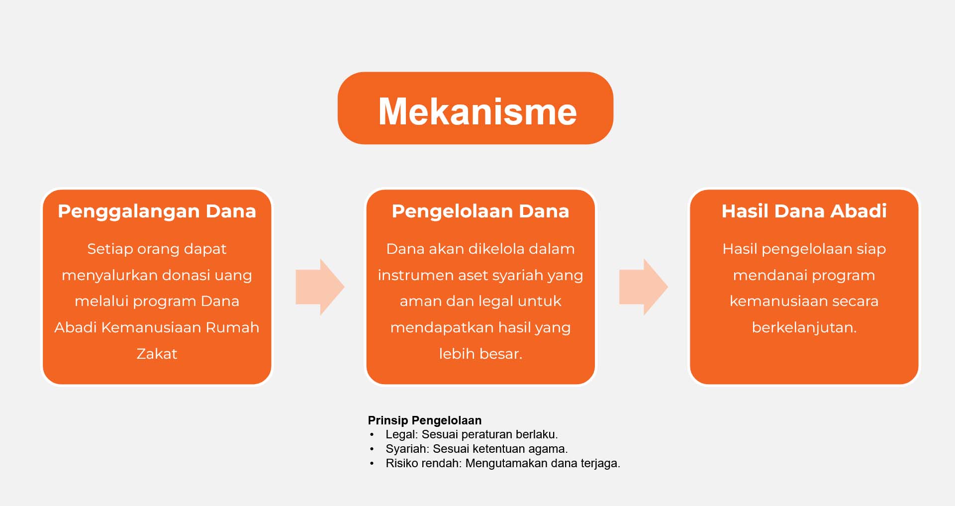 Dana abadi adalah dana pokok dari infak donatur yang disimpan dan dikelola berkelanjutan. Pokok dana tidak digunakan, hanya hasil pengelolaannya yang disalurkan untuk implementasi program sosial. Sumber dana abadi bersumber dari infak donatur.