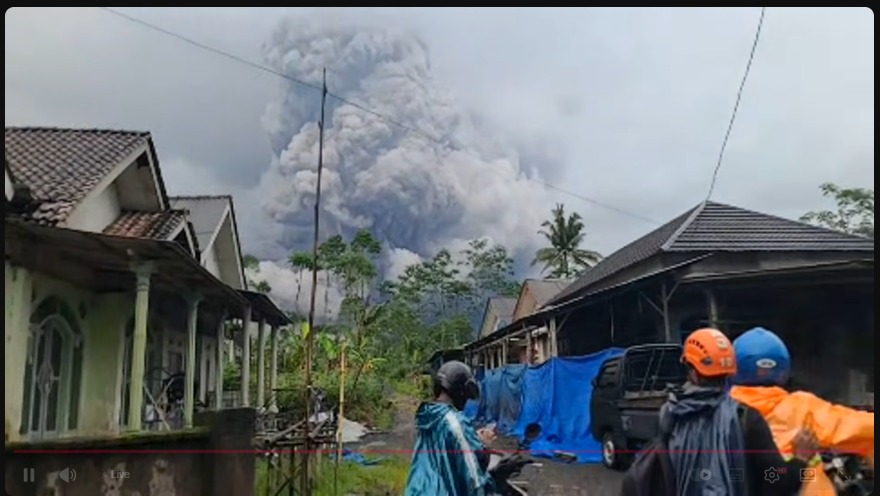 19 November 2025, Semeru kembali erupsi dengan tinggi kolom abu teramati sekitar 2.000 m di atas puncak (kurang lebih 5.676 m di atas permukaan laut), dengan kolom abu teramati berwarna kelabu bersama intensitas tebal condong ke arah utara dan barat laut.