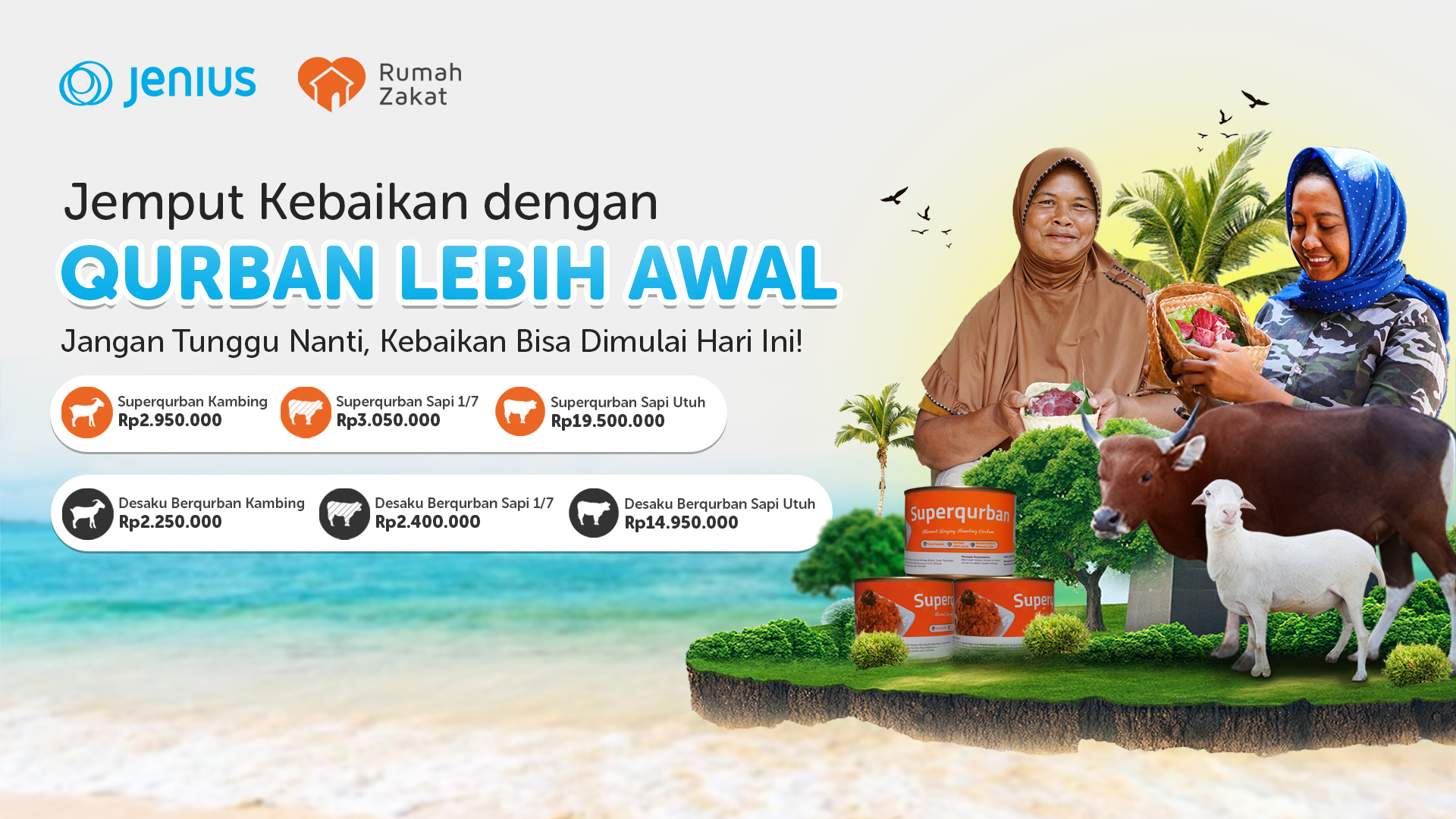 Rumah Zakat X JeniusJemput kebaikan dengan Qurban lebih awal. Desaku Berqurban KambingQurban Anda membahagiakan & Memberdayakan Tunaikan Sekarang Desaku Berqurban 1/7 SapiQurban Anda membahagiakan & Memberdayakan Tunaikan Sekarang Desaku Berqurban SapiQurban Anda membahagiakan & Memberdayakan Tunaikan Sekarang Superqurban KambingSuperquban Manfaat Qurban anda, Jadi semakin luas Tunaikan Sekarang Superqurban Sapi 1/7Superqurban Sapi 1/7 Manfaat Qurban anda, Jadi semakin luas Tunaikan Sekarang Superqurban SapiSuperqurban Sapi Manfaat Qurban anda, Jadi semakin luas Tunaikan Sekarang