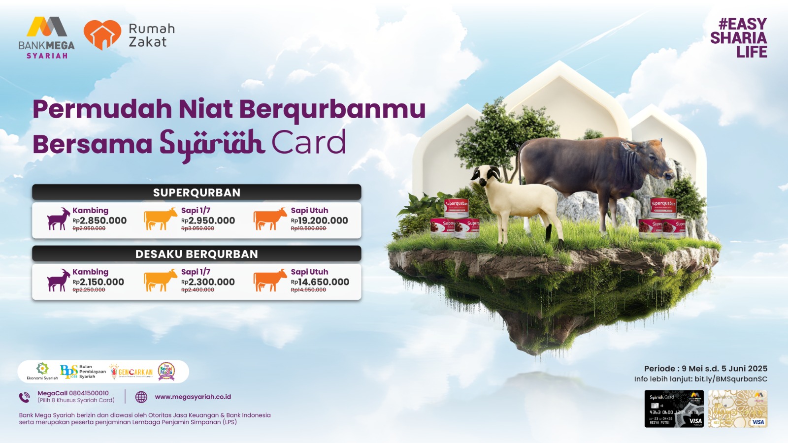 Rumah Zakat X Mega SyariahJemput kebaikan dengan Qurban lebih awal. Desaku Berqurban KambingQurban Anda membahagiakan & MemberdayakanRp 2.150.000 Tunaikan Sekarang Desaku Berqurban 1/7 SapiQurban Anda membahagiakan & MemberdayakanRp 2.300.000 Tunaikan Sekarang Desaku Berqurban SapiQurban Anda membahagiakan & MemberdayakanRp 14.650.000 Tunaikan Sekarang Superqurban KambingSuperquban Manfaat Qurban anda, Jadi semakin luasRp 2.850.000 Kornet Rendang Superqurban Sapi 1/7Superqurban Sapi 1/7 Manfaat Qurban anda, Jadi semakin luasRp 2.950.000 Kornet Rendang Superqurban SapiSuperqurban Sapi Manfaat Qurban anda, Jadi semakin luasRp 19.200.000 Kornet Rendang