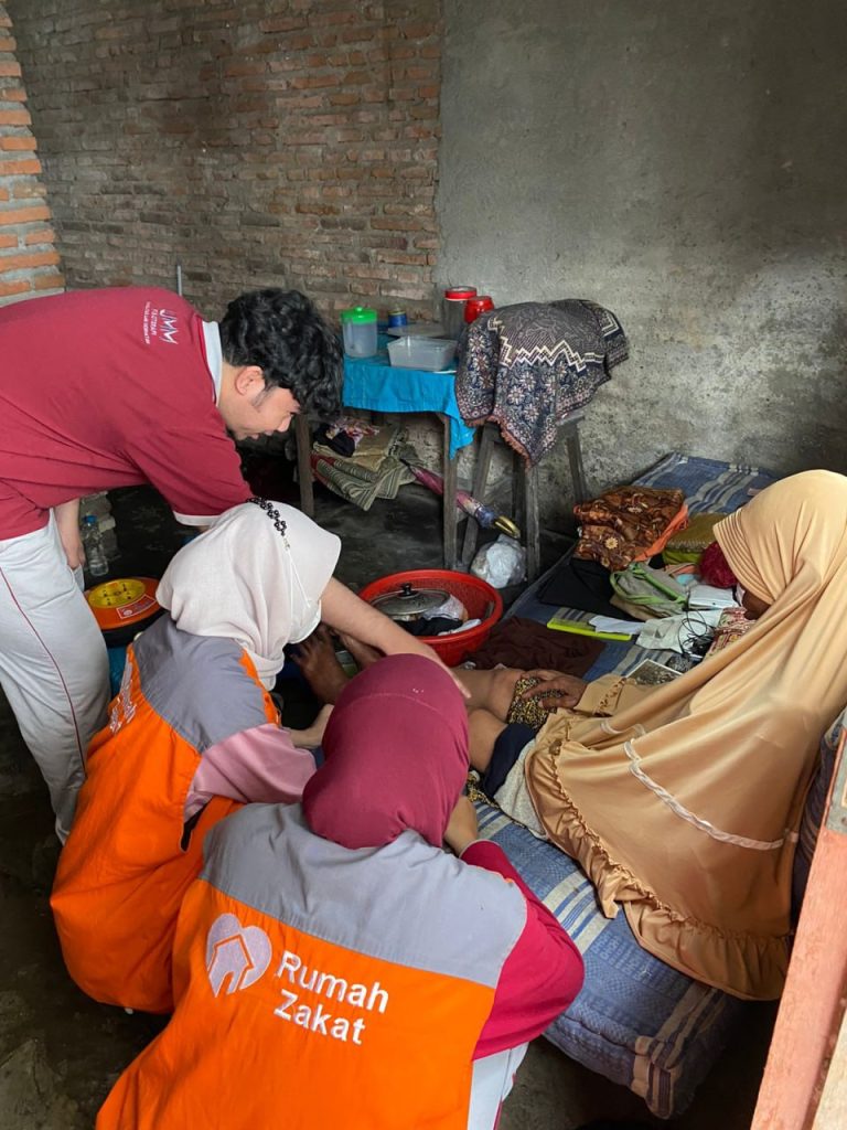 Melalui program homecare lansia Rumah Zakat, tim memberikan intervensi berupa alat bantu serta latihan ringan yang disesuaikan dengan kondisi pasien. Selanjutnya, pendampingan dilakukan secara bertahap agar hasilnya lebih optimal.