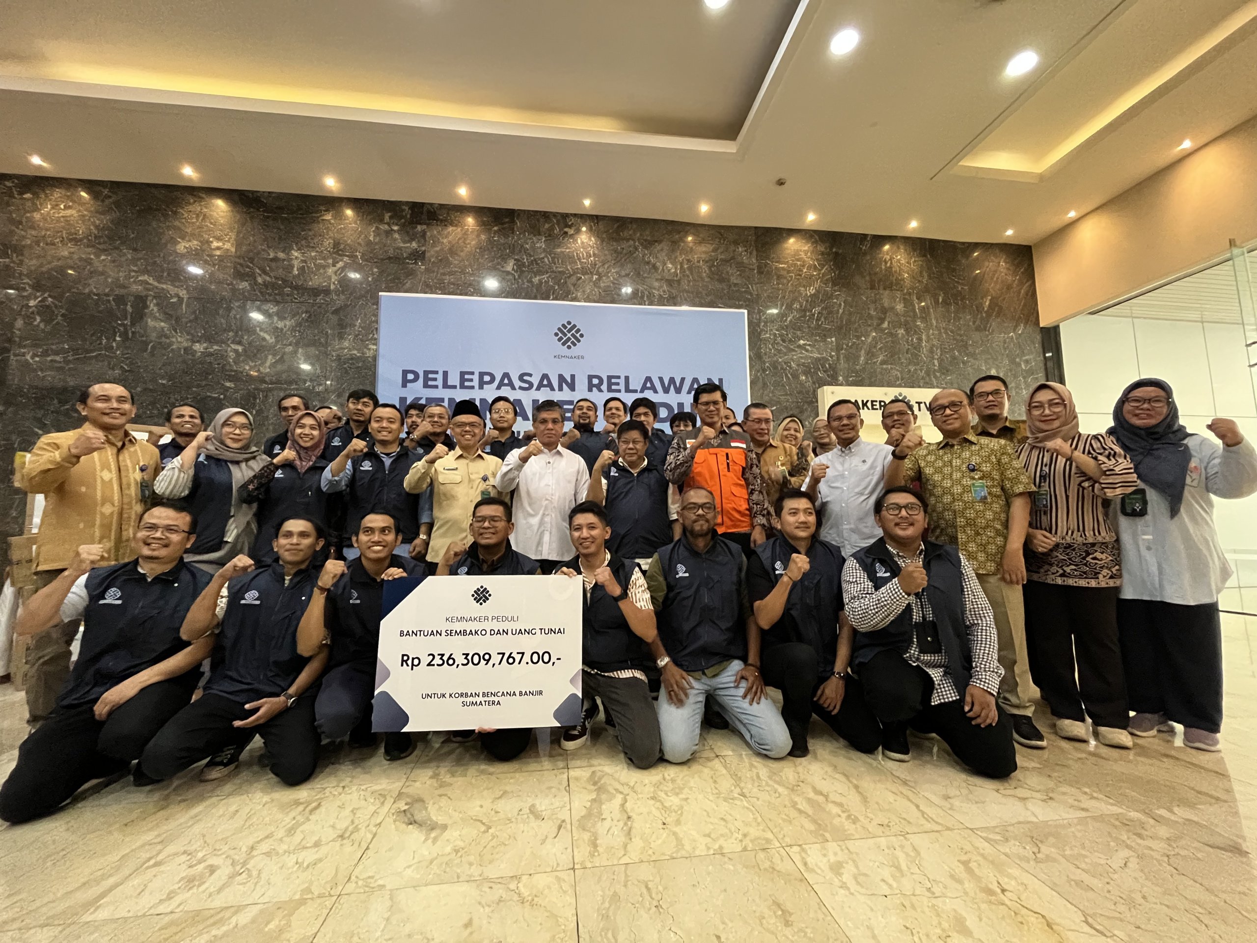 Sebagai bentuk respon cepat, Kemnaker melepas relawan yang akan diterjunkan langsung ke tiga titik bencana. Dalam misi kemanusiaan ini, Rumah Zakat turut memberikan dukungan berupa 5.000 kaleng Superqurban (rendang dan kornet) untuk memenuhi kebutuhan pangan para pengungsi.