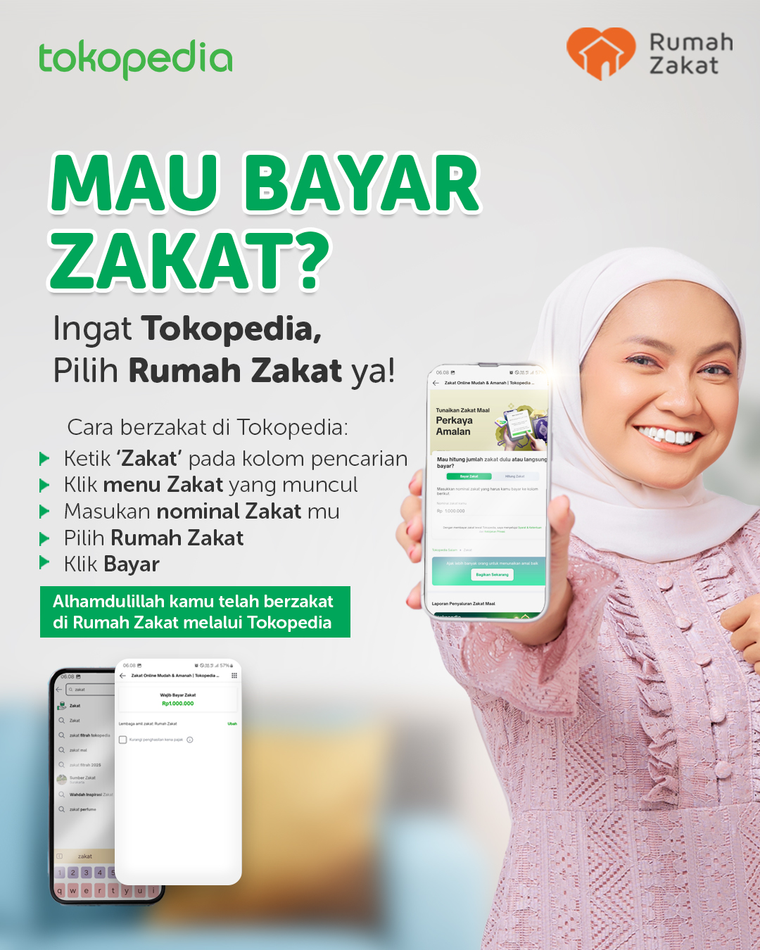 Menunaikan zakat kini semakin mudah dan praktis. Di era digital seperti sekarang, Sahabat tidak perlu repot datang langsung ke tempat pembayaran. Cukup melalui aplikasi Tokopedia, zakat bisa ditunaikan kapan saja dan di mana saja.