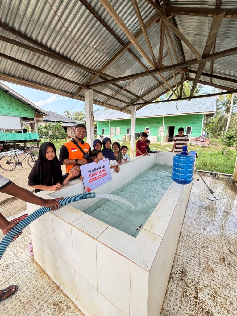 Bantuan air bersih disalurkan ke beberapa titik yang menjadi pusat aktivitas warga. Air tersebut dimanfaatkan untuk kebutuhan ibadah, kegiatan dapur umum, serta kebutuhan para santri dan masyarakat sekitar. Oleh karena itu, kehadiran air bersih menjadi sangat penting di tengah keterbatasan yang masih dirasakan.