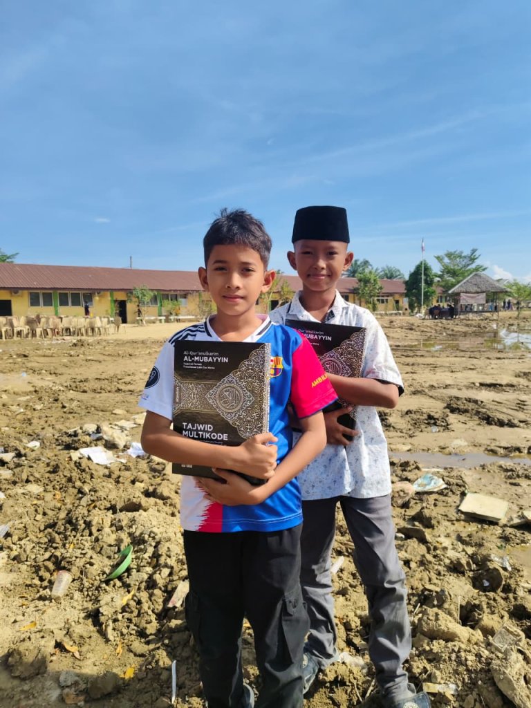Bantuan ini diberikan sebagai respons atas kondisi sekolah yang terdampak banjir, di mana sebagian mushaf Al-Qur’an milik siswa rusak dan tidak dapat digunakan. Kondisi tersebut sempat menghambat kegiatan belajar mengaji serta program tahfiz yang rutin dilaksanakan di sekolah.