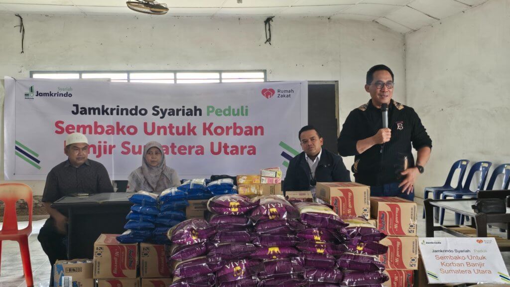 Selain penyerahan simbolis tersebut, Jamkrindo Syariah memberikan bantuan kepada masyarakat korban banjir berupa paket sembako senilai Rp300 juta yang akan disalurkan di berbagai titik di Sumatera Utara, mencakup wilayah Medan, Tapanuli, hingga Sibolga. Distribusi bantuan dilakukan melalui tim relawan yang bekerja sama dengan Rumah Zakat untuk memastikan paket sembako tepat sasaran dan menjangkau masyarakat yang paling terdampak.