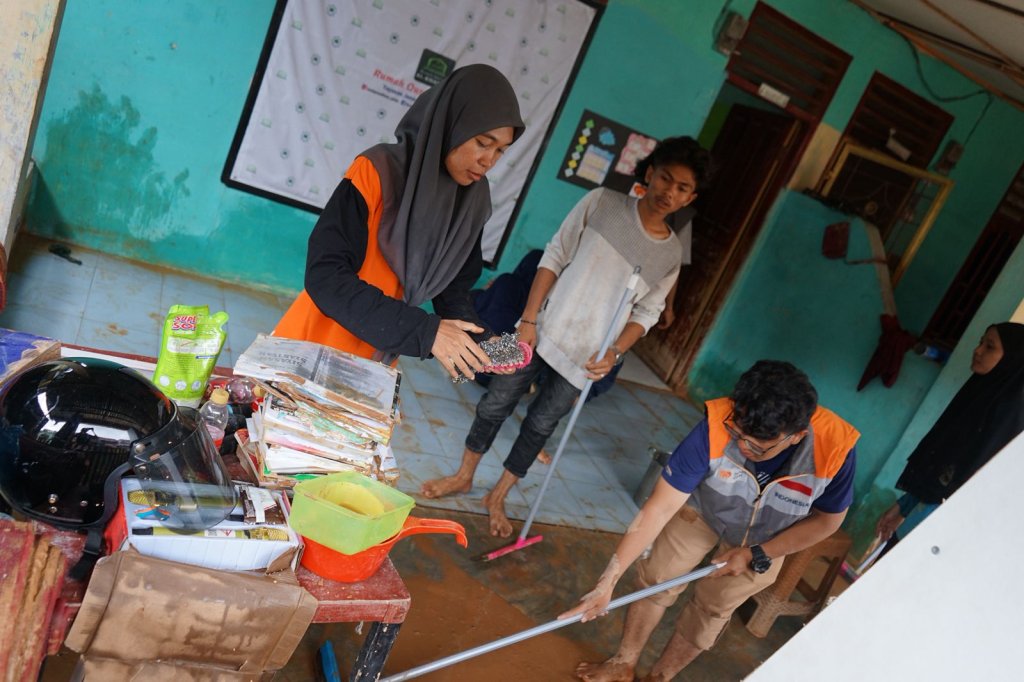 Sejak pagi, Relawan Rumah Zakat bantu bersihkan Rumah Quran agar kegiatan belajar dapat segera berjalan kembali. Para relawan fokus membersihkan endapan lumpur, mencuci perlengkapan mengaji, menata ulang ruang belajar, hingga memastikan lingkungan kembali layak dipakai. Upaya ini dilakukan karena sebagian besar santri merupakan anak-anak dari keluarga kurang mampu sehingga keberadaan Rumah Quran sangat penting bagi perkembangan pendidikan agama mereka.