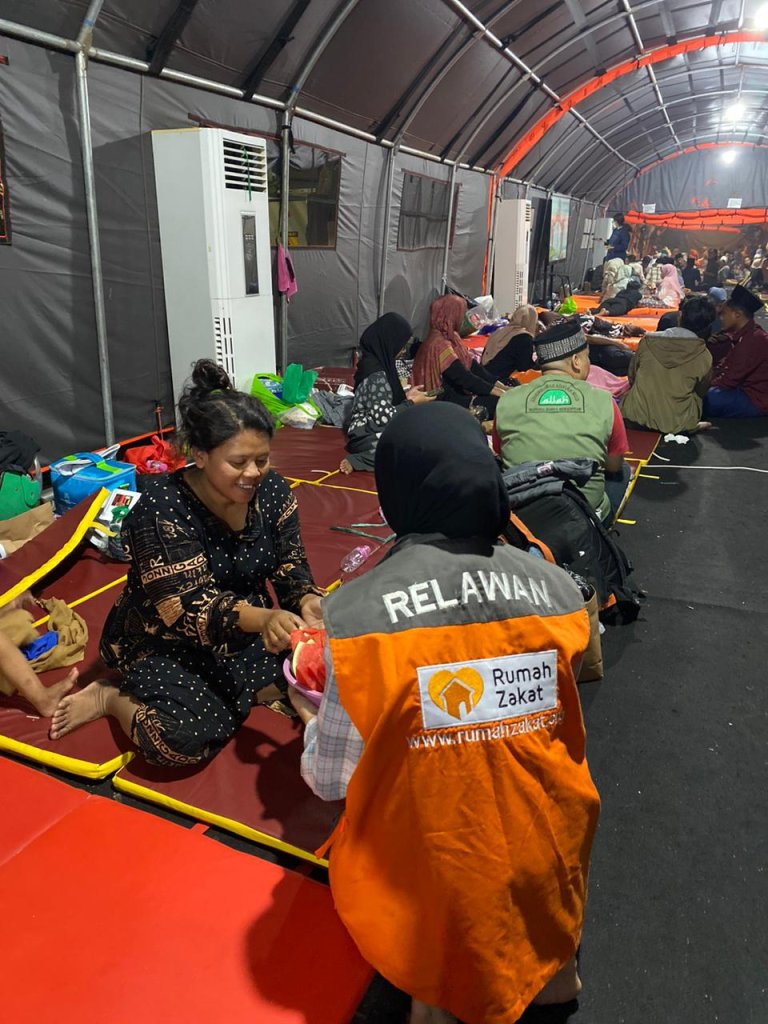 Pada malam hari, tim relawan membagikan 200 cup minuman segar dan 2 buah semangka kepada para petugas dan relawan di lapangan. Kegiatan ini merupakan bagian dari upaya menjaga semangat kemanusiaan dan solidaritas selama masa pemulihan.