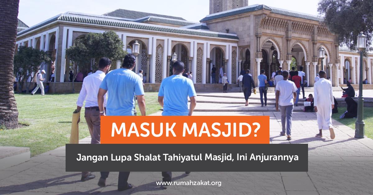 “Jika salah seorang di antara kalian masuk masjid, maka janganlah ia duduk sebelum shalat dua rakaat.” HR. Bukhari dan Muslim dari Abu Qatadah radhiyallahu ‘anhu